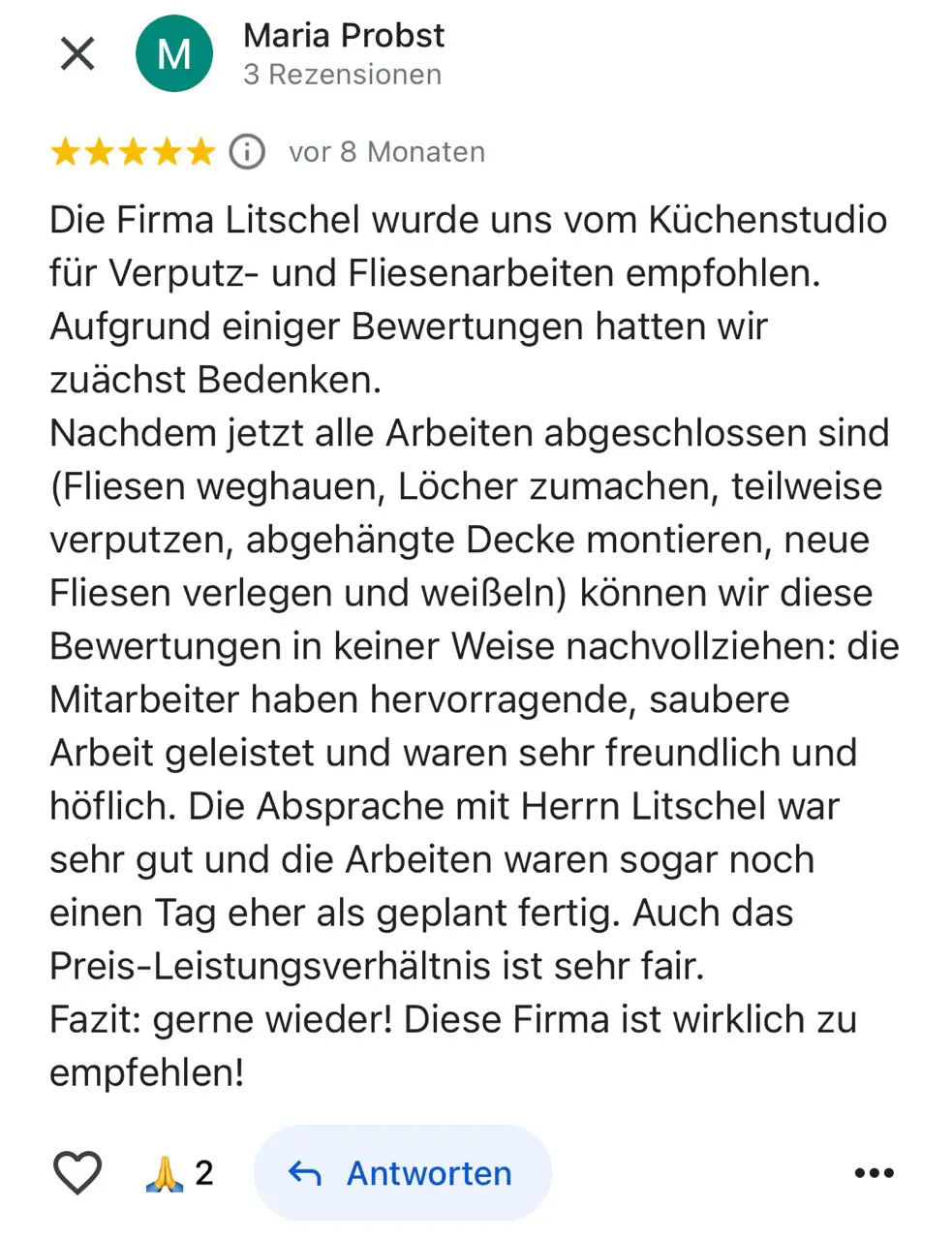 All die begeisterten Empfehlungen belegen am besten, wie unschlagbar die Preis-Leistung von Sanierungsprofi Borchmann im Premiumbereich ist.