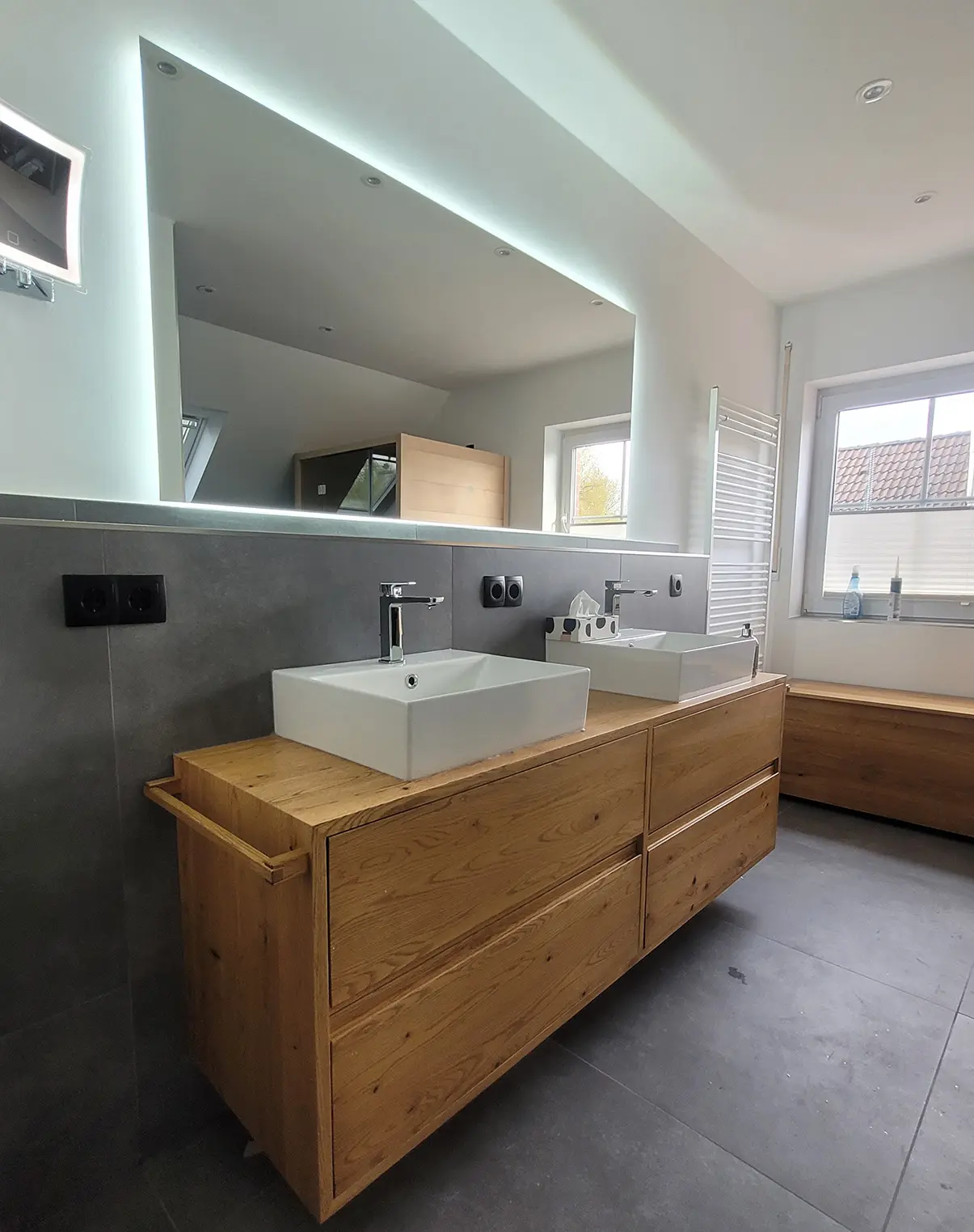 Unser Ziel ist es, Ihre Wünsche zu erfüllen, selbst wenn dies für uns eine kleinere Gewinnspanne bedeutet. Wir scheuen keine Herausforderung, auch nicht bei Bädern im Obergeschoss.